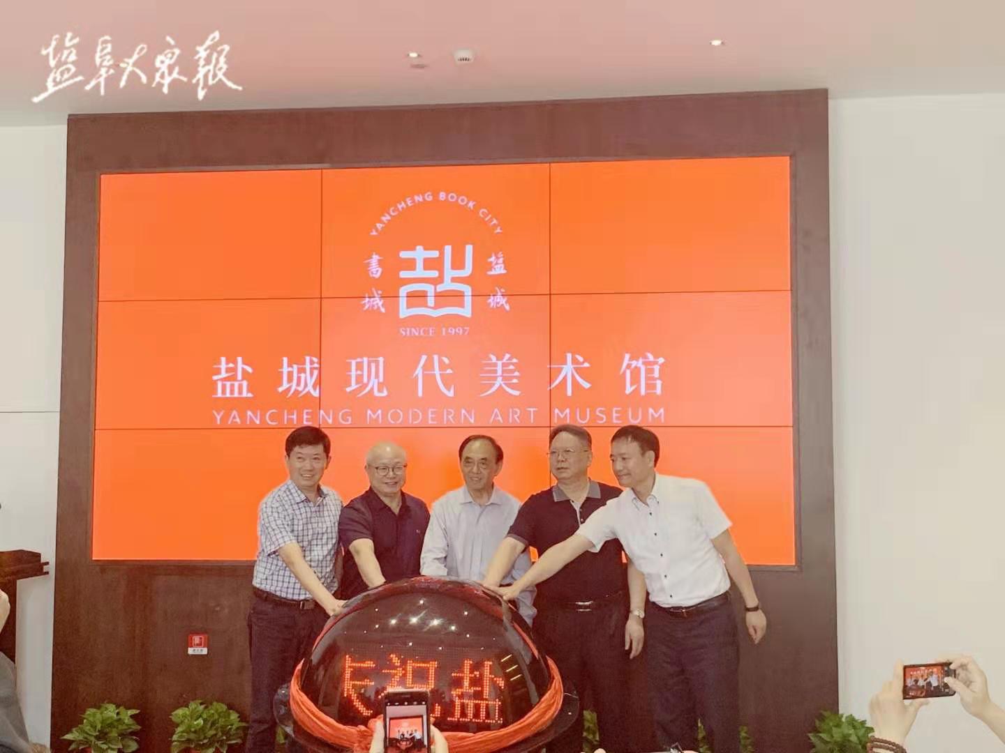 盐城市人大原副主任、盐城书协名誉主席曹友琥,盐城市政协副主席、盐城市工商联主席吕拔生,盐城市原人大副主任、中国保龄球协会副主席郭健生,盐城市文联主席、党组书记高定和盐城市工商联党组书记黄金文共同触摸水晶球启动了盐城现代美术馆开馆暨江苏中国画名家10人邀请展开幕式。
