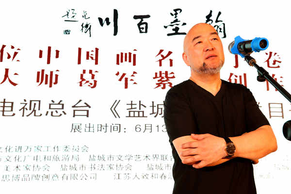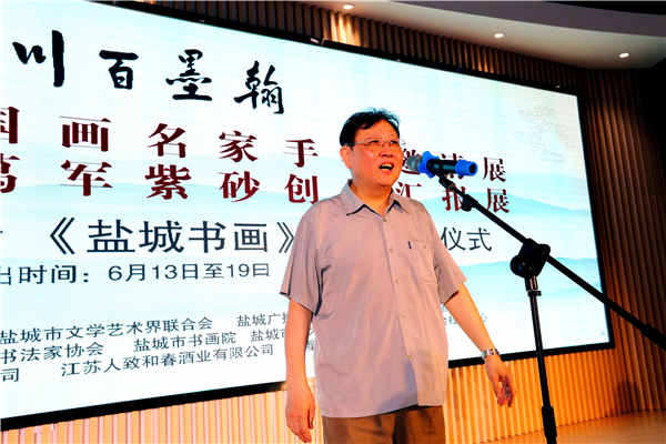翰墨百川,汇聚盐渎;妙手丹青,湿地生辉。为了策应中国文化进万家活动,6月13日上午,“翰墨百川——全国百位中国画名家手卷邀请展暨葛军紫砂创作汇报展”、盐城广播电视总台《盐城书画》栏目开播仪式在市美术馆举行。