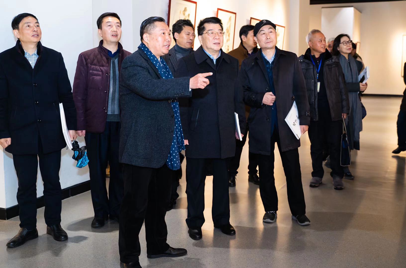 开幕式由市文广旅局副局长朱超主持,市湖海艺文社办公室主任、江海国画院院长陆志云介绍了展览筹备情况,郑小珊、市美术馆副馆长吴洪春作为参展艺术家代表发言,王锦胜、陈卫国共同为展览揭幕。