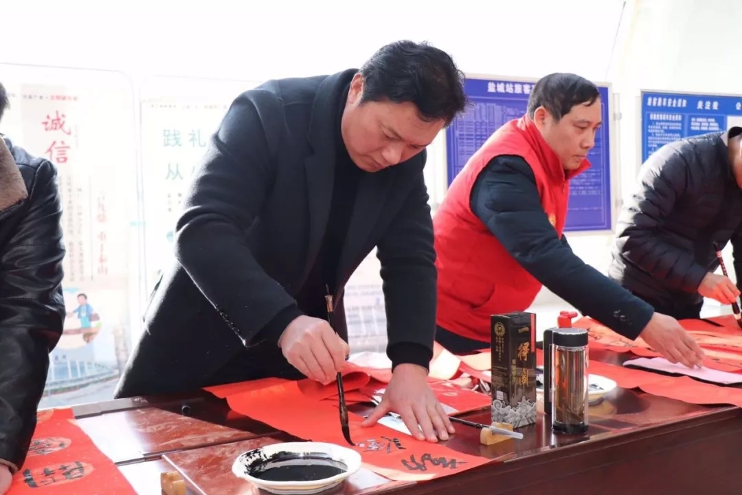 在盐城市火车站写春联送福字活动
