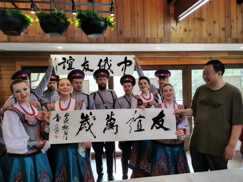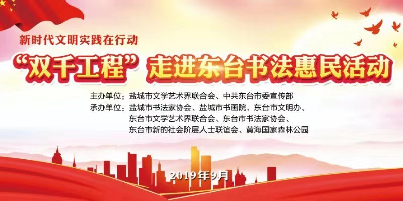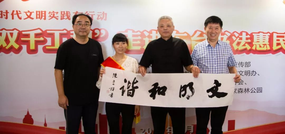 盐城市、东台市书协近20名书法家以饱满的热情,昂扬的精神,生动的笔触书写核心价值观、讴歌美好新时代,展示了文化自信,赞美了伟大祖国。他们现场创作了数十幅社会主义核心价值观等作品,赠送给东台各级好人代表。“中国好人”崔卫香曾作为全国五好文明家庭标兵受到习近平总书记接见,她很感谢书法家陈学植为她书写了“文明和谐”作品。正在黄海国家森林公园演出的俄罗斯哥萨克歌舞团演职人员纷纷来到活动现场,欣赏书法创作,书法家们向他们赠送了作品,他们为大家表演了“喀秋莎”等经典名曲。市文联向黄海国家森林公园赠送了由市书协主席、市书画院院长郭列平题写的“森呼吸 林距离”作品。