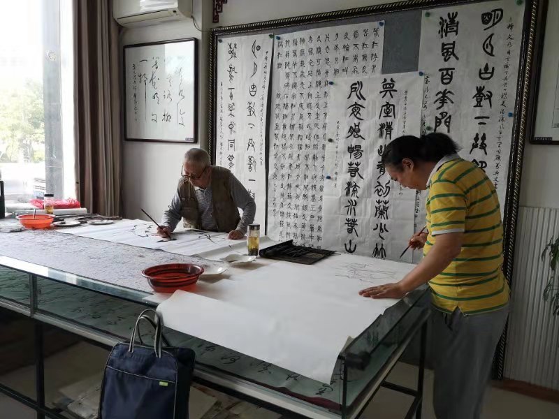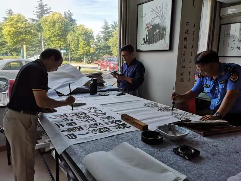 9月25日下午,射阳县文联在射阳名人书画院举办“墨秀河山绘蓝图——庆祝新中国成立70周年文艺沙龙”活动,近20位书法、美术界人士现场挥毫泼墨,用画笔描绘祖国七十年发展的巨大成就,勾勒光明幸福的美好未来。一幅幅书法美术作品,表达出了射阳文艺界人士坚守初心、勇担使命,听从党的号召、紧紧依靠人民,同心共筑中国梦的强大决心和壮志豪情。