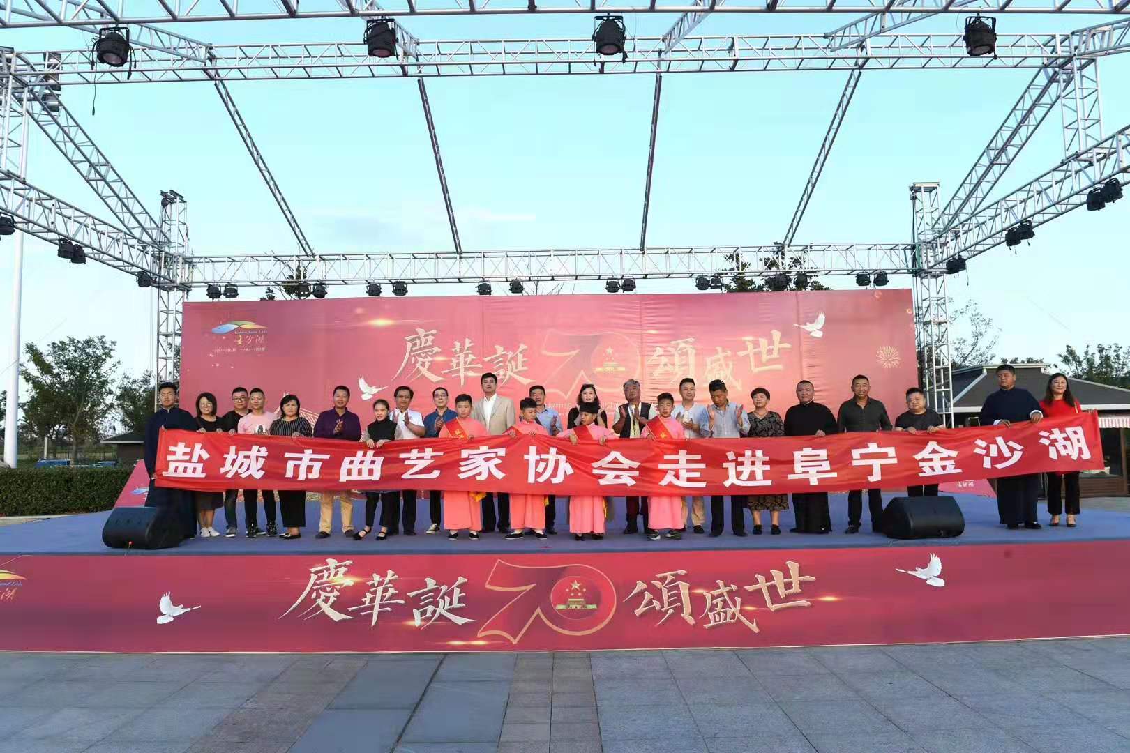 欢腾的锣鼓敲响金秋的大地,激情的颂歌吟唱水乡的美景。10月2日下午,市曲艺家协会组织老、中、青、少四代文艺志愿者来到阜宁金沙湖景区表演了精心准备的节目,将欢笑带给游客和居民,收获了现场观众阵阵掌声和好评。