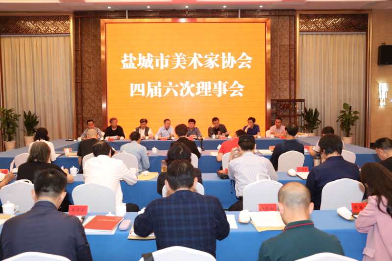 会议由市美协副主席兼秘书长苏海涛主持,副主席杨建生传达了市文联三届七次全委会精神,主席李晓东作工作报告并传达了“百年江苏—大型美术精品创作工程”会议精神。建湖县美协主席郭永霞作了经验介绍,沈稳松、彭蔚海、顾晔明等5名理事就协会工作作发言。会议增补王晶晶、李小明、孟臻、张子美4人为理事。