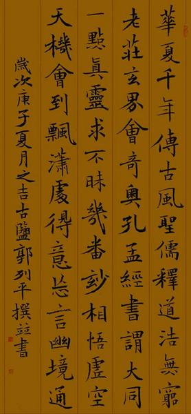 “兰陵美酒郁金香,玉碗盛来琥珀光”“画之逸格,最难其俦”“采菊东篱下,悠然见南山”……丁觇的隶书,智楷的草书,郭列平书法作品遒劲有力,收放有度,曾被北京故宫博物院、中国美术馆、中国文字博物馆等国内外几十个博物馆、美术馆及海外藏家收藏。中央电视台、北京电视台、上海东方卫视、南京电视台等数十家电视台以及《人民日报》《中国书法》《书法》《书法报》《美术报》《书法导报》等国内外近300种刊物专版、专题介绍其书法艺术。郭列平在国家中文核心期刊《瞭望》《艺术百家》《书法》等杂志发表学术论文10余篇,北京荣宝斋出版社等出版郭列平个人书法专集近20部。