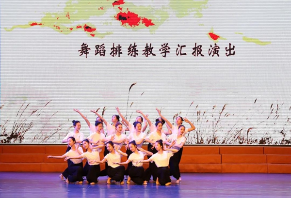 本次汇报,同学们主要展示了教学基础训练和分场分段情境舞蹈。无脂粉修饰,无服装衬托,他们将为期10天的高质量、高强度集训成果展示在舞台上。