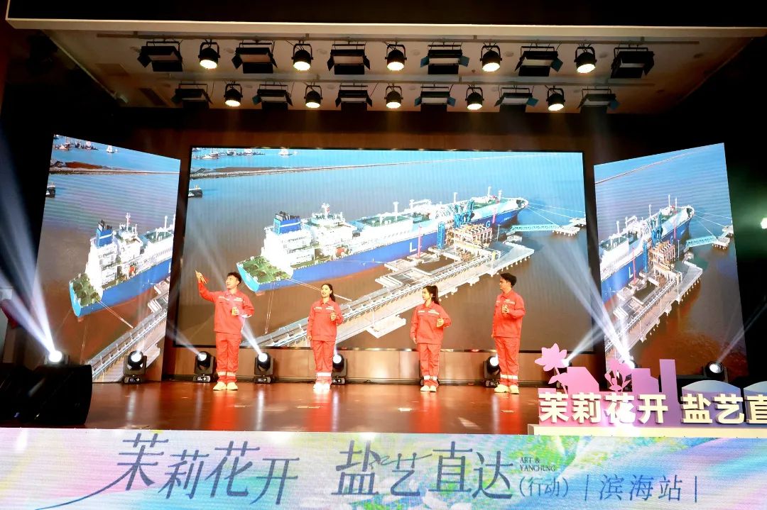 本次“茉莉花开·盐艺直达”行动滨海站打破传统文艺传播的边界,创新实践让文化赋能产业,让艺术对话工业,将高品质文化活动输送到企业一线,以多元艺术形式展现绿色能源发展与地域文化魅力,为企业职工和周边群众呈现了一场视听交融的盛宴。