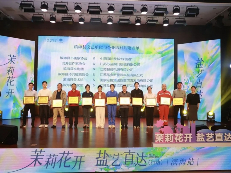 滨海县以“艺企融合”为支点,撬动起文化润企、文艺兴产的时代杠杆。现场举滨海县文艺组织与企业助力仪式,将高质量文化服务直接输送至五家企业。