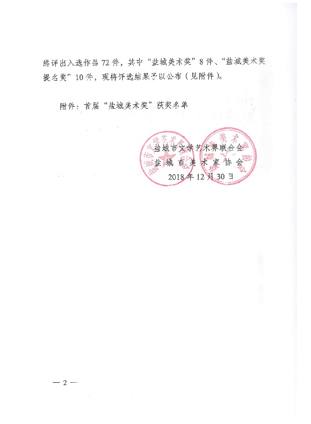 关于首届盐城美术奖评选结果的通知