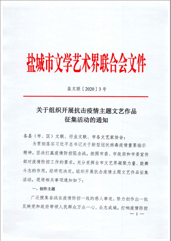 关于组织开展抗击疫情主题文艺作品征集活动的通知