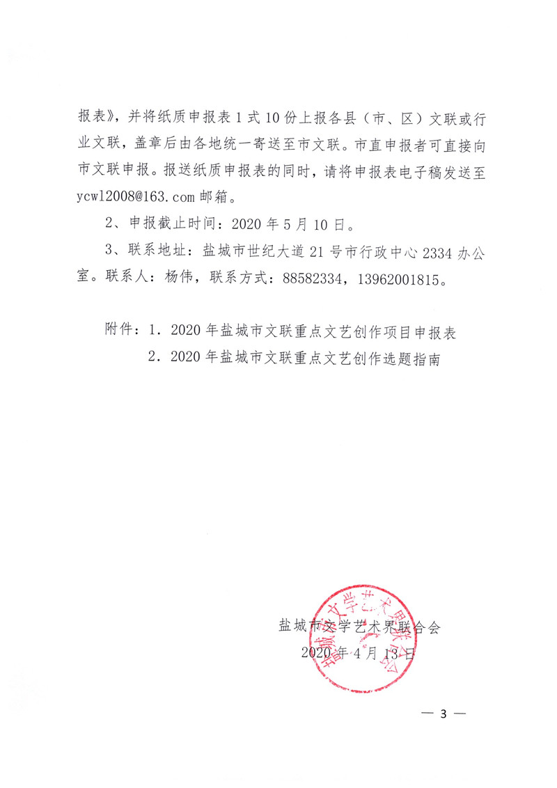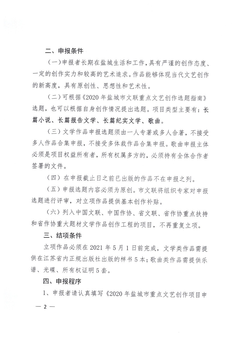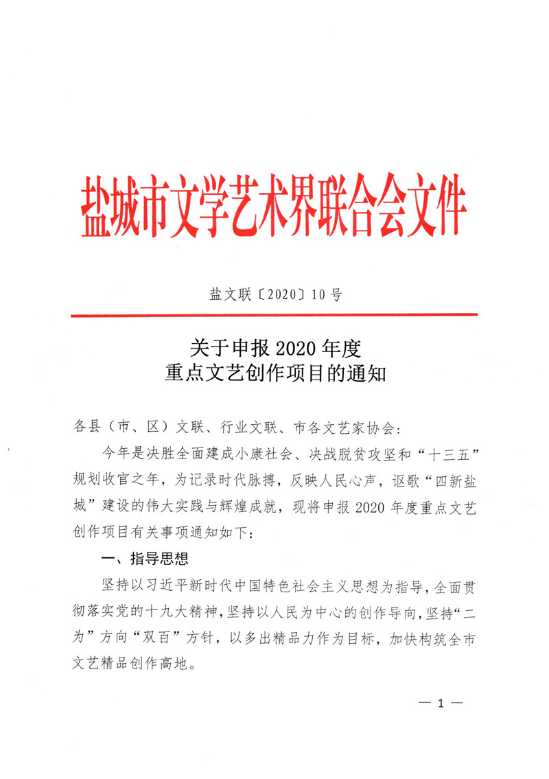 2、2020年盐城市文联重点文艺创作选题指南