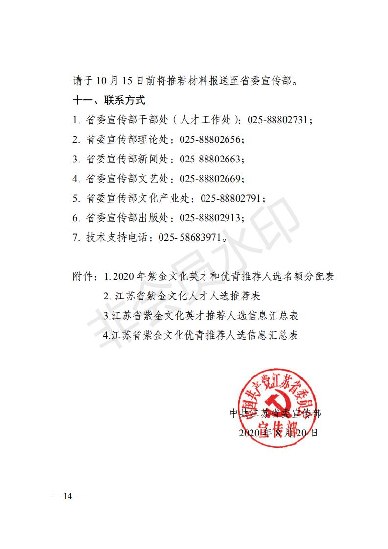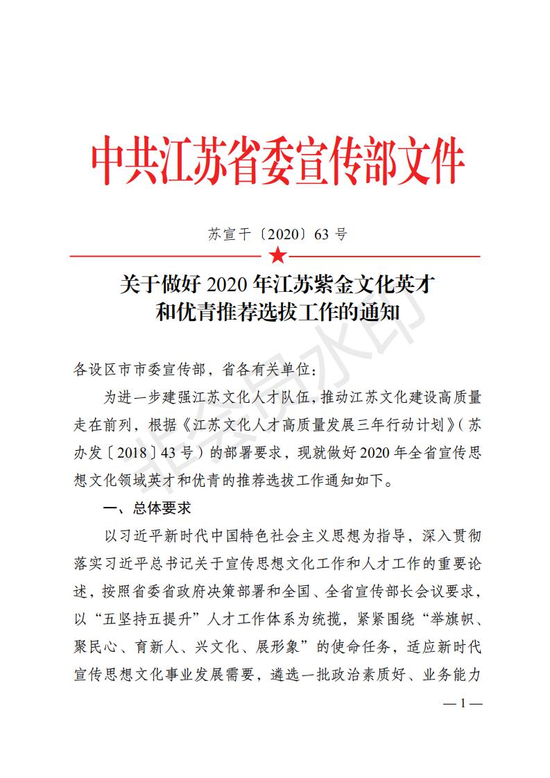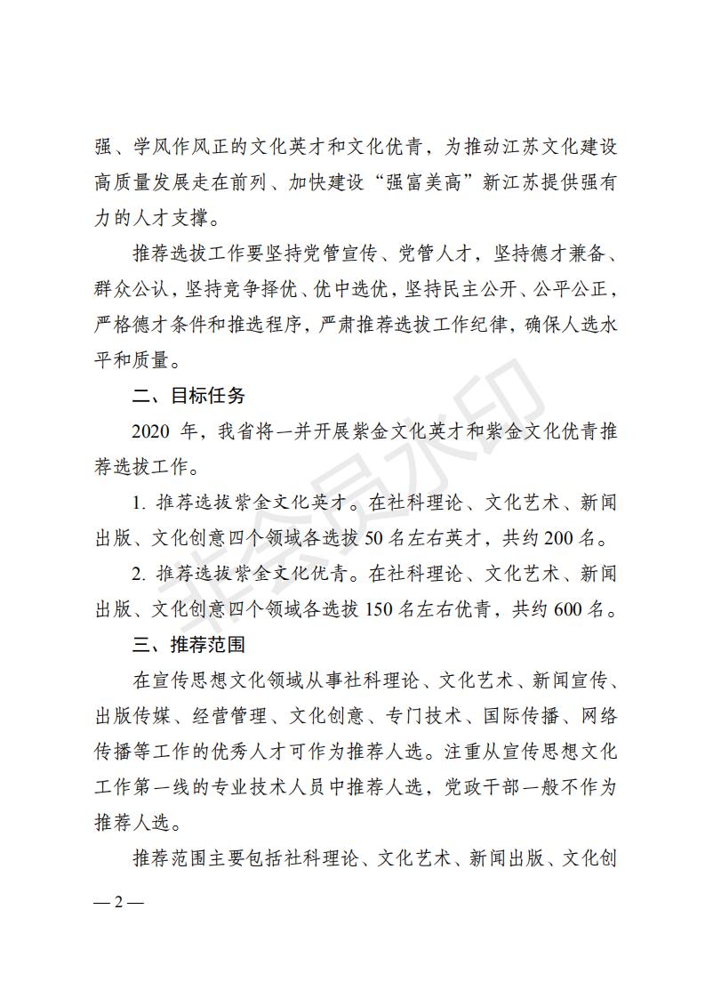 关于做好2020年江苏紫金文化英才和优青推荐选拔工作的通知