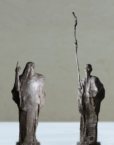 吴为山是中国现代“写意雕塑”理论的创立者,《齐白石与达芬奇的对话》灵感来自于他在意大利威尼斯旅游时,幻想超越时空的东西方文化代表,在人类文明长河中共同泛舟的意象。