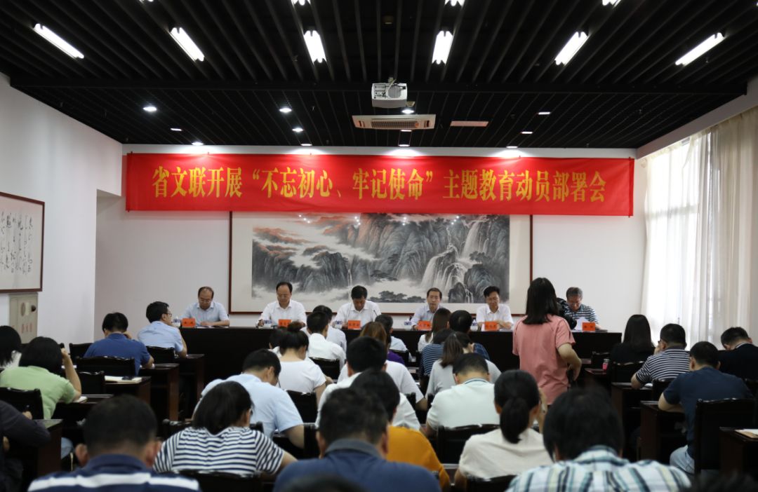6月11日,江苏省文联召开“不忘初心、牢记使命”主题教育动员会,江苏省文联党组书记、常务副主席、书记处第一书记水家跃作动员讲话,对文联“不忘初心、牢记使命”主题教育进行动员部署。强调要深入学习贯彻习近平总书记在中央“不忘初心、牢记使命”主题教育工作会议上的重要讲话精神,深刻领会开展主题教育的重大意义,准确把握目标任务,高标准落实党中央和省委部署要求,切实推动省文联主题教育取得实实在在成效。省委第五巡回指导组组长、省人大常委会环境资源城乡建设委员会主任秦景安出席动员会议并讲话。