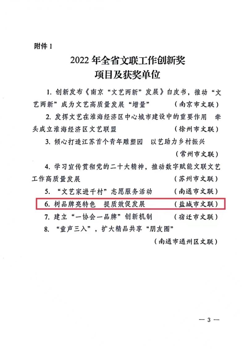 近日,省文联发布《关于2022年全省文联工作创新奖和创新提名奖的通报》,市文联“树品牌亮特色 提质效促发展”项目喜获2022年全省文联工作创新奖。
