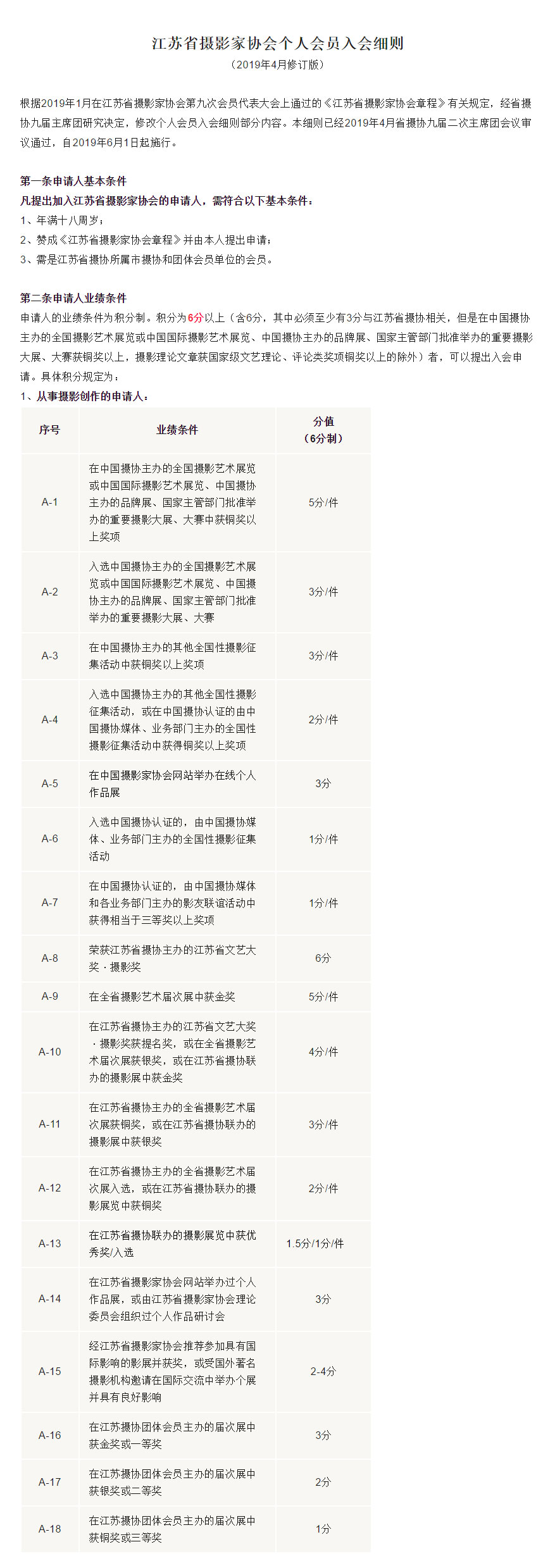 江苏省摄影家协会个人会员入会细则(2019年4月修订版)