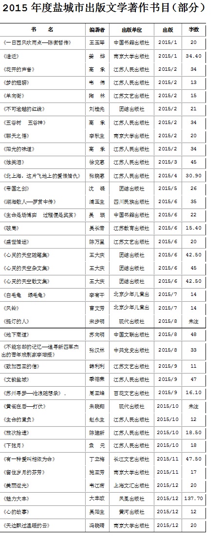 2015年盐城市出版文学著作书目